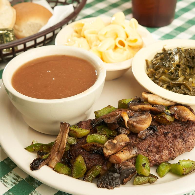 Such delicious food!! I ordered the hamburger steak with grilled mushrooms and onion topped with gravy, with sides of turnip greens, cucumber salad, and green beans. Oh, was it awesome!!! This was true to their motto of 'Good Home Cookin'!!...
